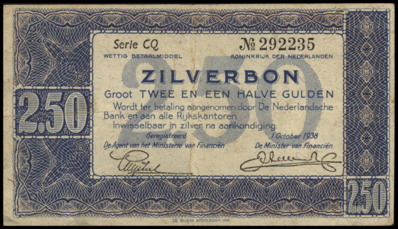 Netherlands - Zilverbon PL14.b 2½ Gulden 1938