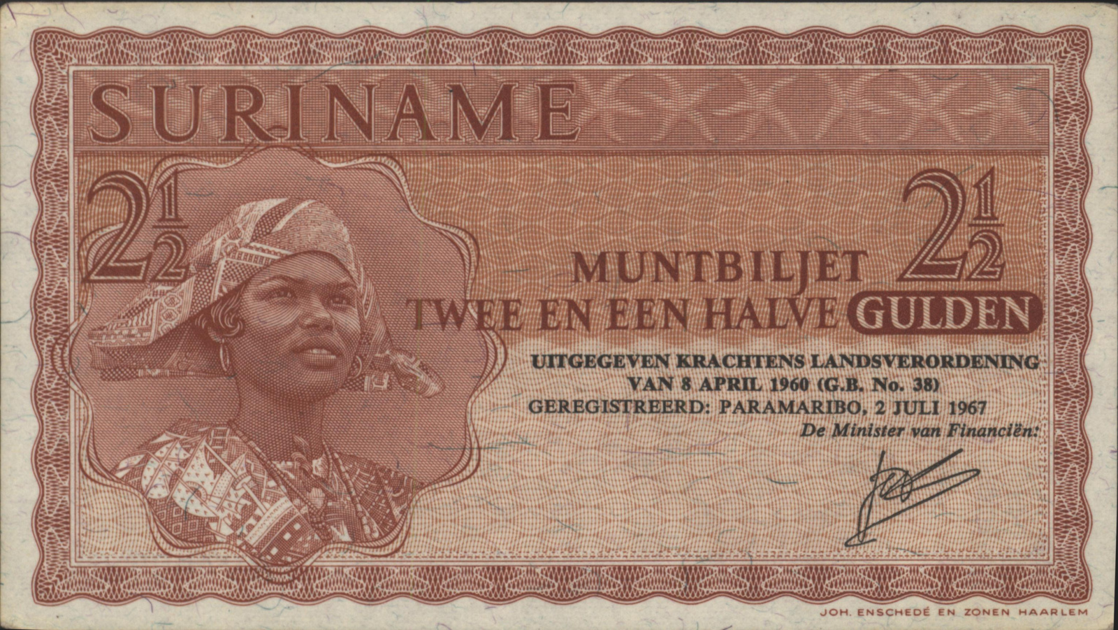 Suriname PLS17.2.b 2 1/2 Gulden 1967