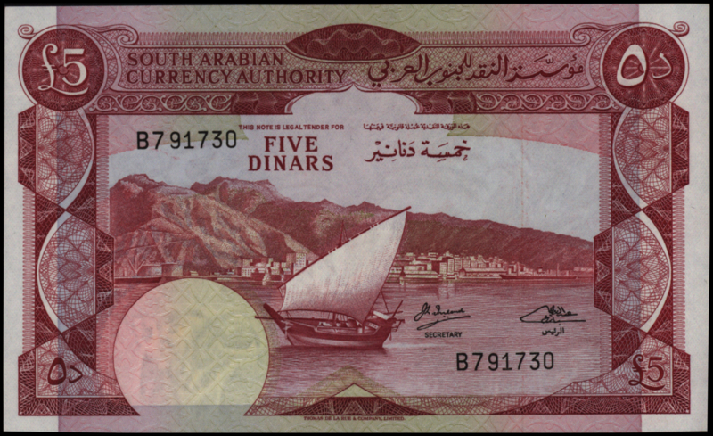 Yemen Democratic Republic - South Arabia P4.b 5 Dinars 1967Zuid Arabië / South Arabia, 5 Dinars. Type jaar/year: [1965-'67]