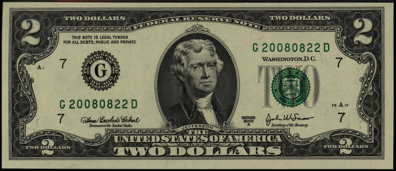 United States of America (USA) P515.a 2 Dollars 2003Verenigde Staten van Amerika (VS) / United States of America (USA), 2 Dollars. Type jaar/year: [2003]