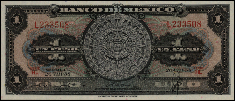 Mexico P59.d 1 Peso 1958Mexico, 1 Peso. Type jaar/year: [1957-1970]
